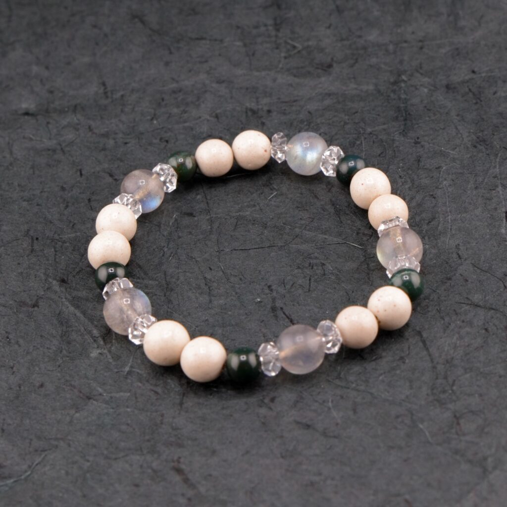 本物の玉川産北投石と、他の天然石を使用した、当店オリジナルのデザインブレスレットです。